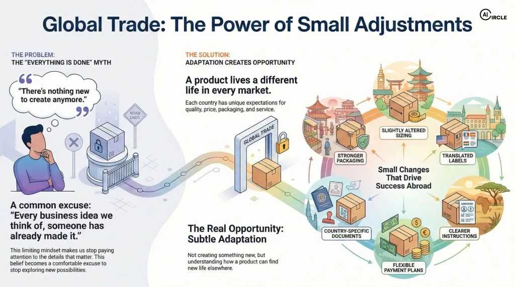 But the more time I spend in international trade, the more I see how far this sentence is from reality. A product that feels “finished” at home rarely stays finished when it enters another country. It meets new habits, new rules, new expectations and suddenly it needs a small adjustment, a different explanation, or a new way of presenting value. That’s usually the moment you realise nothing is truly “already done”. Things just look complete until they start travelling.