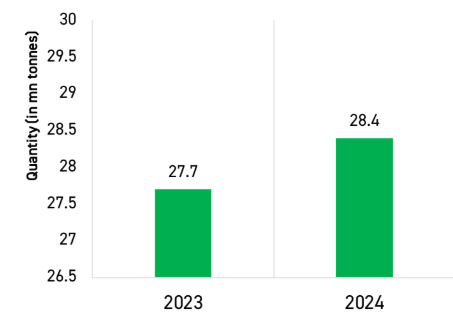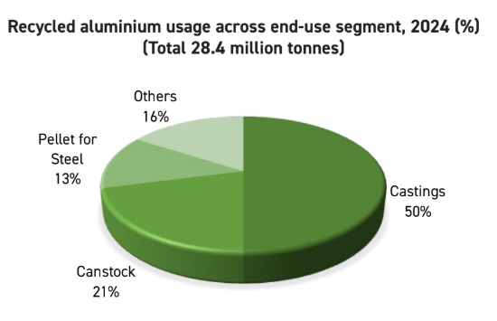 Global recycled aluminium usage, 2023-2024 (in million tonnes)