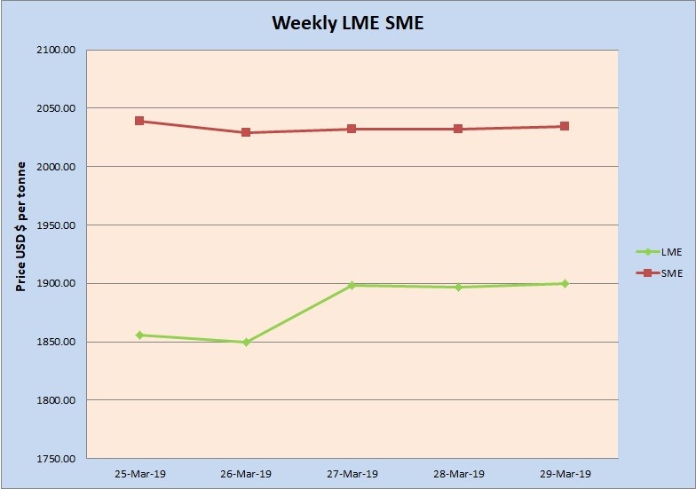 Tight bauxite supplies lowered operating alumina capacity and supported domestic alumina prices. SMM reported on Thursday that social inventories of primary aluminium ingots in China shrank 56,000 tonnes in the week ended March 28, showing signs of recovering consumption. Those factors supported the China aluminium prices over the week. The SHFE 1905 contract is expected to remain firm in the coming week.