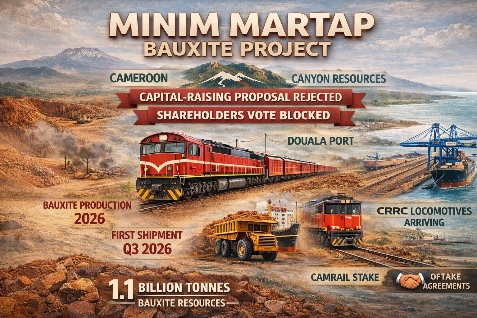 Logistics preparations are also continuing. Discussions with CRRC remain ongoing, and the first locomotives are to arrive at Douala port between mid- and late second quarter of 2026. These locomotives will transport bauxite from the inland rail terminal to the port for export.