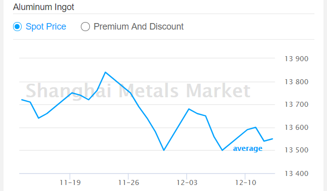 On the other hand, aluminium ingot price showed a rise today, on December 13, but failed to push up the alloys prices. The A00 aluminium ingot price today climbed RMB 10 per tonne to reach out at RMB 13,550 per tonne. The average prices are expected to hover at RMB 13,530 per tonne and RMB 13, 570 per tonne, with spot discounts to settle at RMB 20 per tonne.