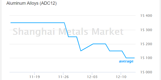 But despite the surge in billet inventories, the aluminium alloys (ADC12) showed no change in price and neither the aluminium alloy (A356) and aluminium alloy (A380). Aluminium alloys (ADC12) price was still found at RMB 15,100 per tonne while aluminium alloy (A356) and aluminium alloy (A380) at RMB 14,200 per tonne and RMB 15,850 per tonne, respectively.