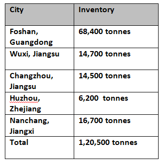 {alcircleadd}The current status of aluminium billet inventories across major Chinese markets is as follows: