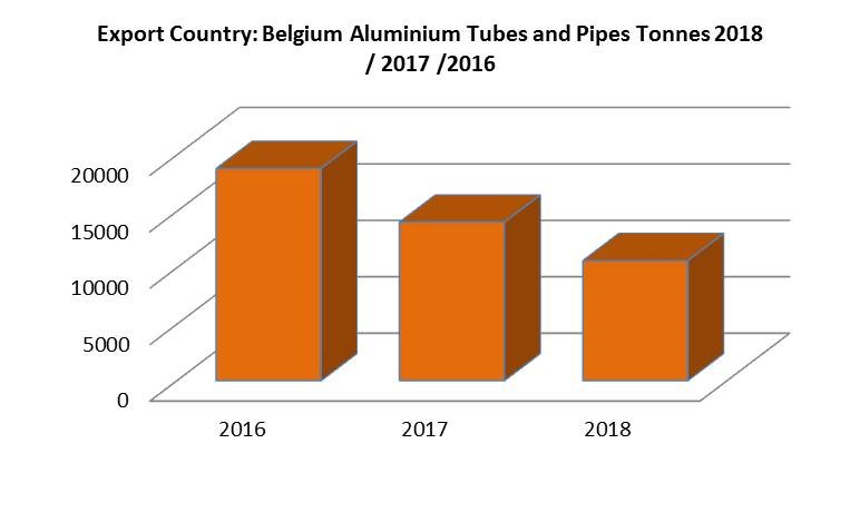 {alcircleadd}International trade data shows that Belgium exported 14043 tonnes of aluminium tubes and pipes in 2017, down from 18790 tonnes in 2016. The country’s export of aluminium tubes and pipes is projected to drop to 10630 tonnes in 2018.