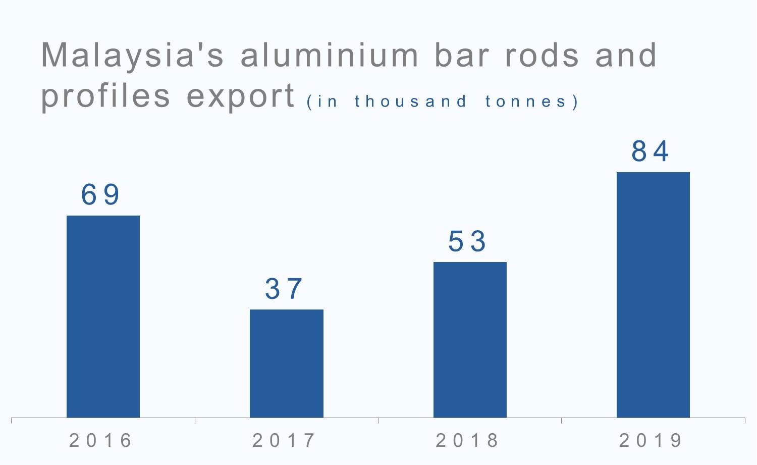 According to the global export-import data, the export of aluminium bar rods and profiles by Malaysia is expected to grow this year by 58 per cent to stand at 84,069 tonnes. In 2018 as well, the export volume had grown by about 44 per cent to come in at 53,253 tonnes. Only in 2017, the volume was year-on-year down to 37,001 tonnes, compared with 69,236 tonnes in 2016, showed the international data.
