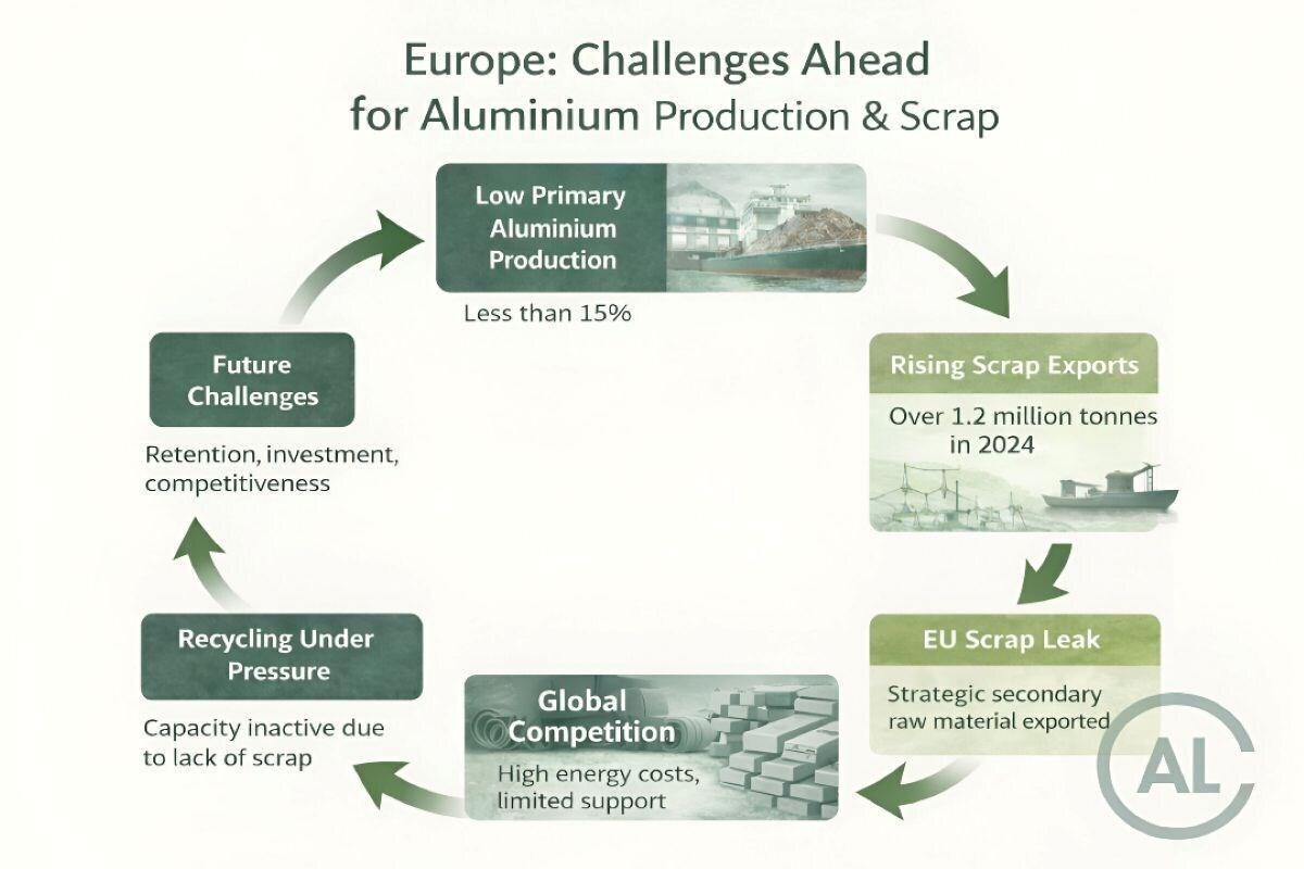 Referring to an interview between Corriere della Sera and Emilio Braghi, Mario Conserva mentioned that in 2024, the EU exported a huge quantity of aluminium scrap, which “exceeded 1.2 million tonnes — an all-time high, with a significant share heading to Asia.” The figure, according to Braghi, accounts for “approximately 10-11 per cent of global trade volumes, with the majority of shipments going to Asia.” Meanwhile, due to the lack of raw materials, the European recycling capacity remains inactive.