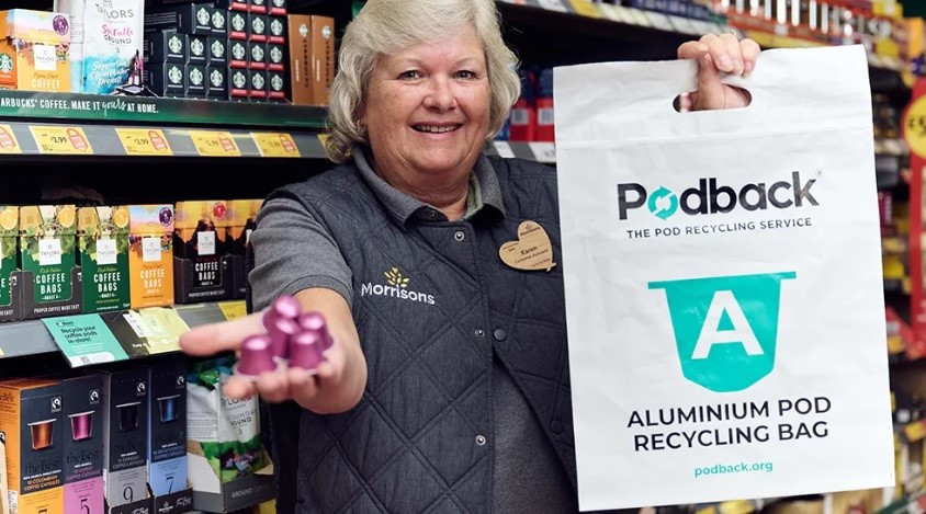 "To make it even easier for our customers who want to brew fresh coffee at home to recycle their used coffee pods. Now they can grab a Podback bag, fill it at home and simply drop it off on their next store trip," said Natasha Cook, sustainable packaging and plastics manager at Morrisons.