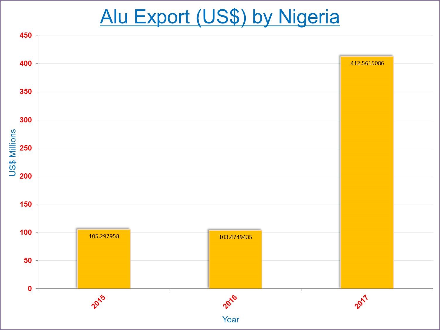 Nigeria is the 49th largest export economy in the world and the 107th most complex economy according to the Economic Complexity Index (ECI). The country exports raw aluminium and scrap aluminium to name a few around the globe.