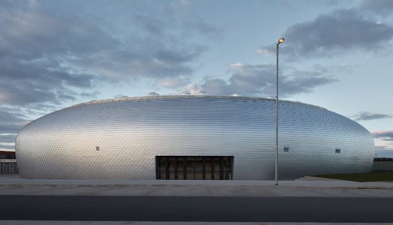 Aluminium is adorning more and more innovative building structures around the world primarily for it formability and lightweight advantage. The rounded shell of a school sports hall near Prague is aesthetically covered and disguised with reflective aluminium panels.