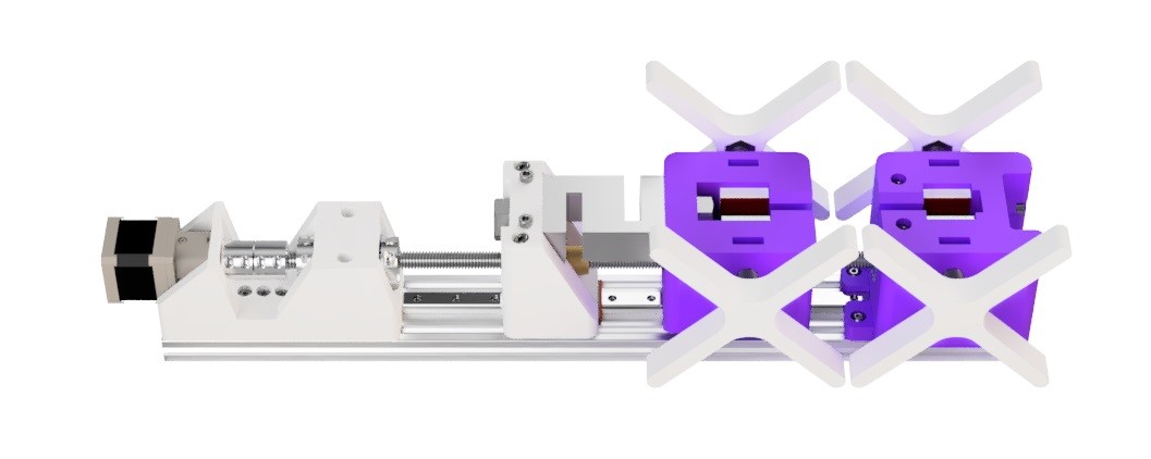 The tensile testing system's primary components are the fixed fixture, moving fixture, load cell (and its mount), and motor (a geared NEMA 17 stepper motor). The motor controls the moving fixture through a lead screw linked to a load cell. The motor moves the lead screw once the specimen has been loaded and the tensile test has commenced.